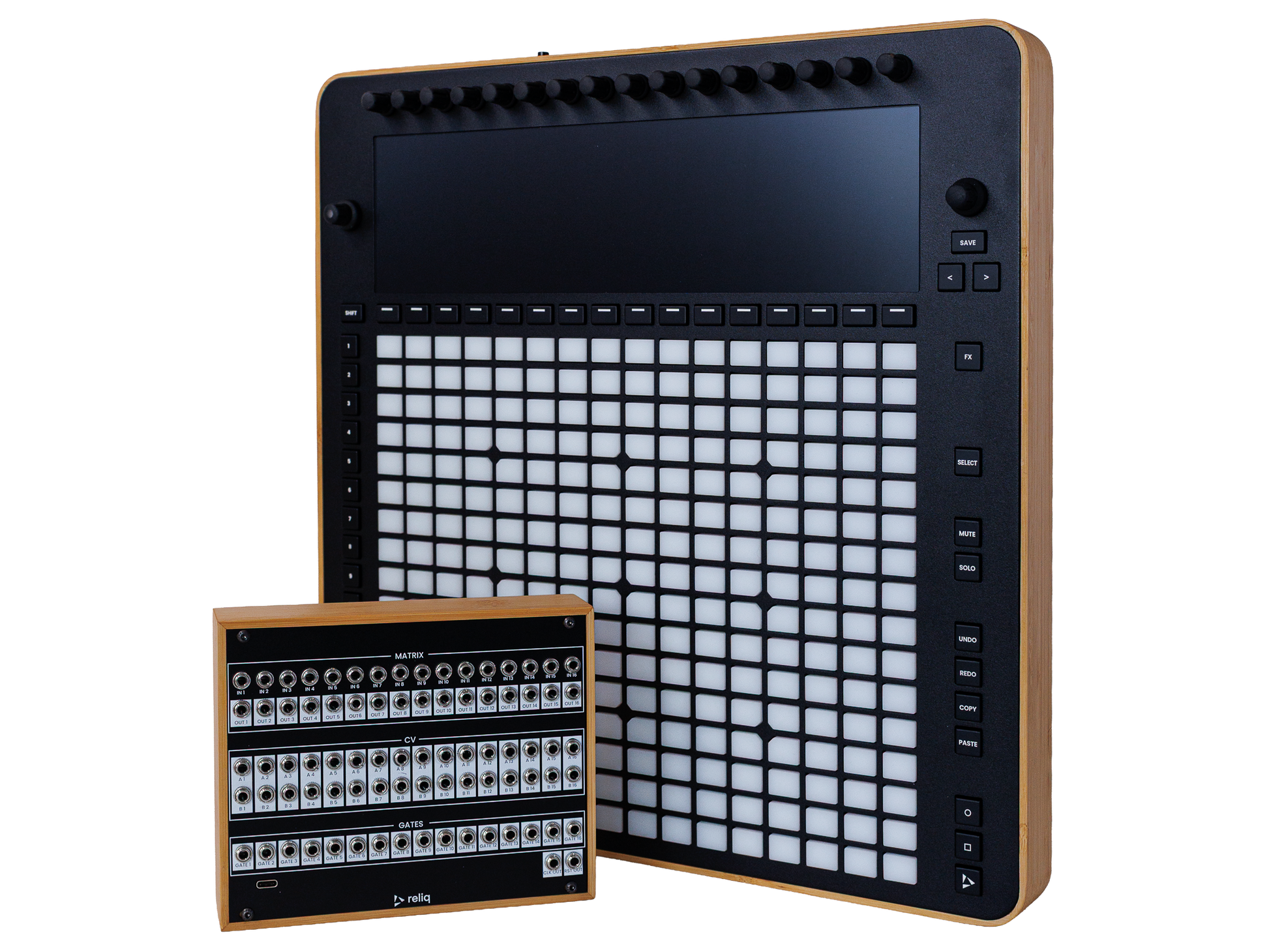 Each unit features a 256-pad grid, 16 encoders, and a high-resolution display—offering the most expansive interface of any instrument in its class. Reliq sequences MIDI, CV, and audio together, and integrates directly with Ableton Live and Bitwig for a fully synchronized hybrid setup.