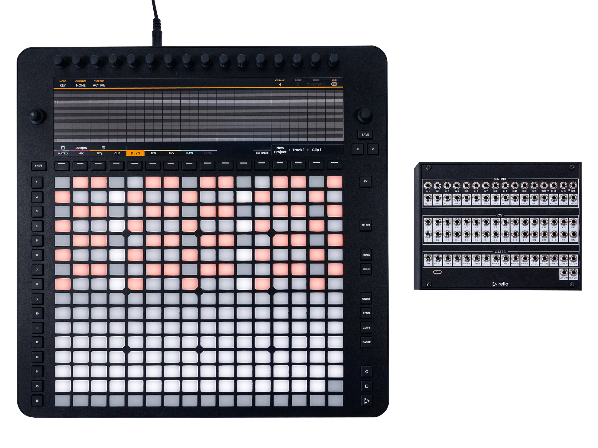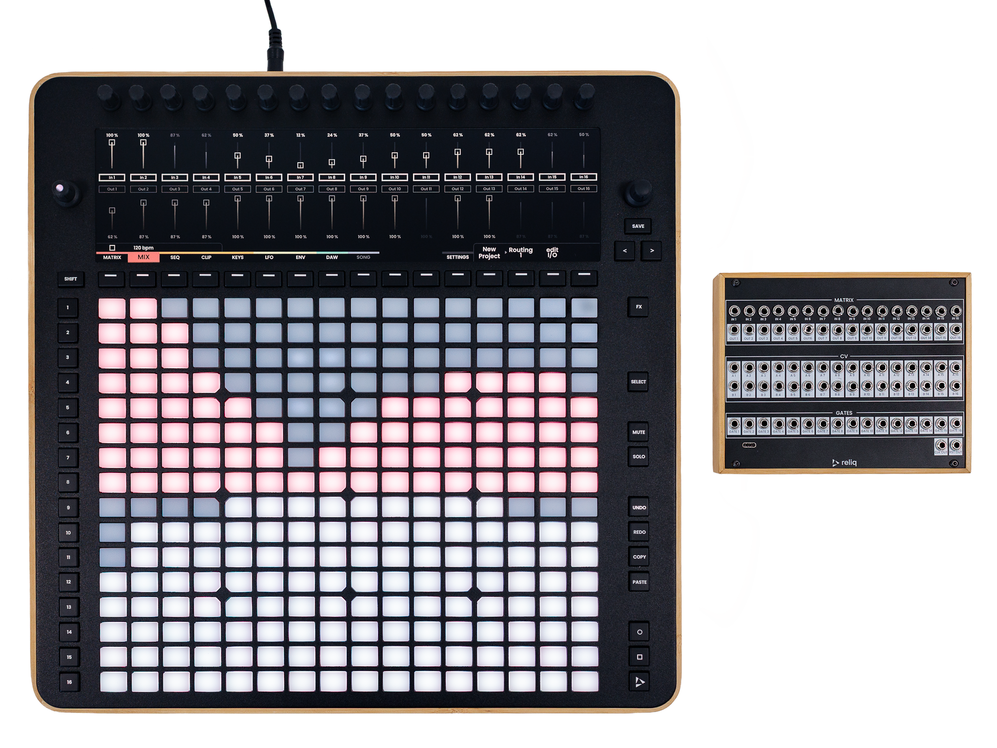 Reliq is a hybrid control surface that combines sequencing, modulation, mixing, and performance into one cohesive instrument.